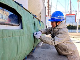 全員加班為變電站設備做防凍保溫,為網控變電站的關鍵開關設備“穿”上定制保溫棉衣;另一路由經驗豐富的老員工牽頭,對空壓機管路及附屬設施加裝保溫層,”班長趙詩宇一邊指導年輕員工郝巖包裹開關接線口。
